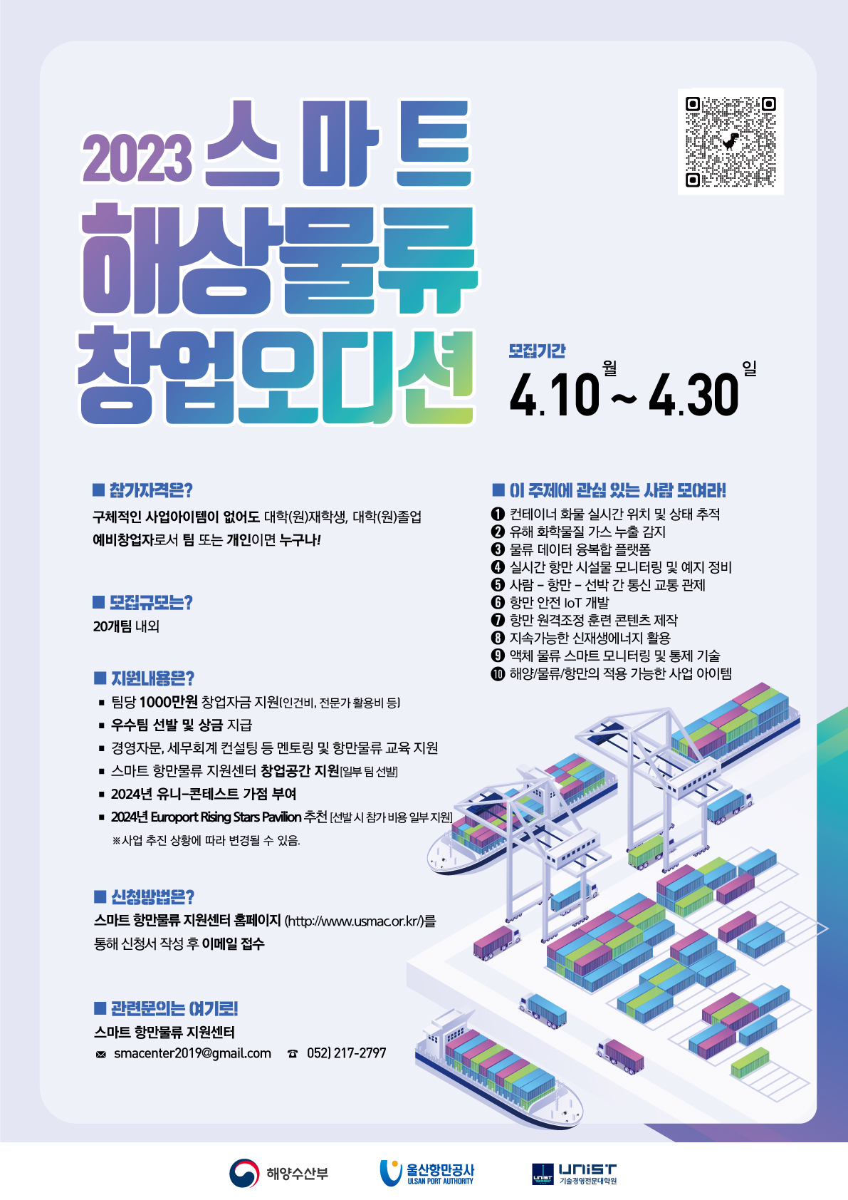 [홍보]2023년도 스마트 해상물류 창업오디션 6기 모집 공고 관리자 │ 2023-04-14 2023년도 스마트 해상물류 창업오디션 6기 모집 공고문.hwp | 2023년도 창업 오디션 관련 신청서 및 첨부서류.hwp HIT 1644 |